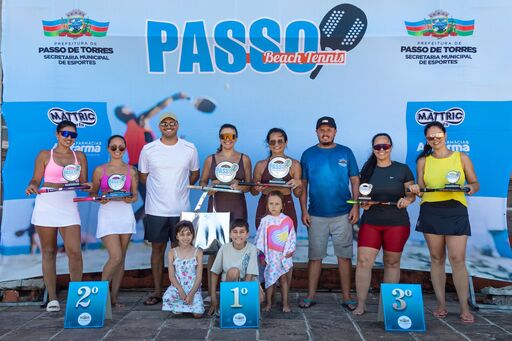 A Secretaria Municipal de Esportes de Passo de Torres realizou, no domingo (25), o torneio Passo Beach Tennis, em Bellatorres. A competição reuniu 46 duplas nas categorias Masculino C e D, Feminino C e D e Misto C e D, com início às 8h30.O evento contou com a parceria da LMD Eventos Esportivos e apoio da Farmácia Adifarma Bellatorres, Anasol e da Sociedade Amigos de Bellatorres (SABB).Os jogos ocorreram em frente à sede da SABB, aproveitando o espaço da orla para a montagem da estrutura esportiva. Ao todo, foram utilizadas cinco quadras, sendo três instaladas na beira-mar e duas ao lado da sede da entidade.As quadras localizadas próximas ao clube receberam apoio do Corpo de Bombeiros de Passo de Torres, que, a pedido do secretário municipal de Esportes, Rafael Freitas, realizou a umidificação da areia para garantir melhores condições de jogo.“Eventos como o Passo Beach Tennis fortalecem o calendário esportivo e incentivam a participação da comunidade em atividades esportivas”, afirmou o secretário de Esportes, Rafael Freitas.Além das disputas, os primeiros colocados receberam brindes oferecidos pela Farmácia Adifarma Bellatorres, como forma de incentivo e reconhecimento ao desempenho dos atletas.“A realização de torneios esportivos na orla movimenta o comércio, atrai visitantes e contribui para consolidar Passo de Torres como um destino que investe em esporte, lazer e qualidade de vida”, declarou o prefeito Valmir Rodrigues.Campeões do Passo Beach TennisMisto D1º Marlon e Andressa2º Eliel e Cassiane3º Roberta e SamuelMisto C1º Anderson e Michele2º Agenor e Elisa3º Danielly e CarlosFeminino C1º Daniele e Naiara2º Jaine e Tânia3º Sabrina e KarinaFeminino D1º Érica e Milena2º Gisele e Tiana3º Carine e JosieliMasculino D1º Juliano e Michel2º Marlon e Mateus3º Adair e GilbertoMasculino C1º Anderson e Vitor2º Guilherme e Fernando3º Allan e Éverton