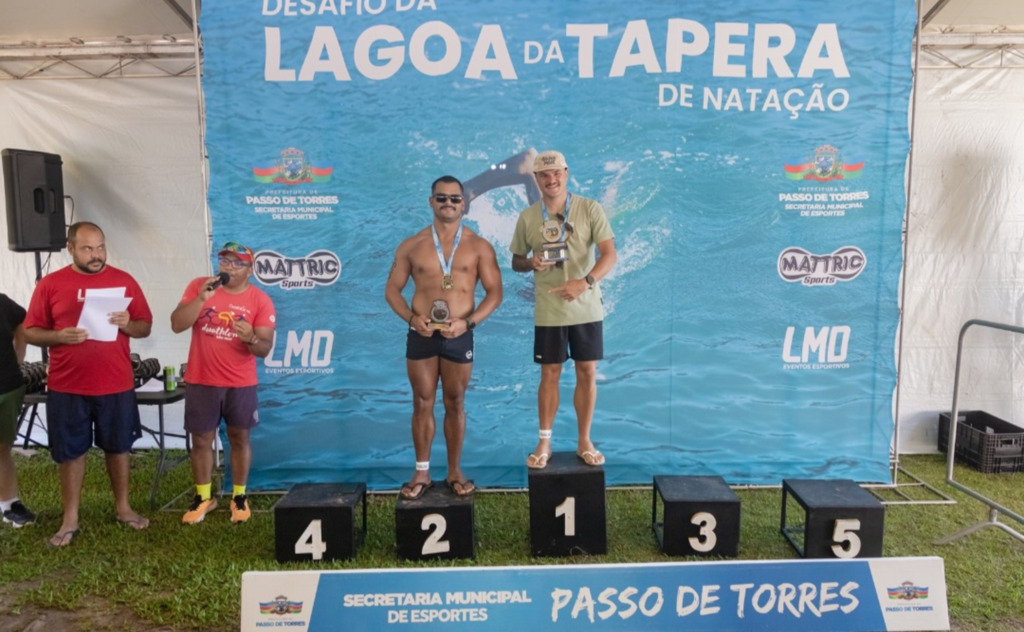 A Prefeitura de Passo de Torres, por meio da Secretaria de Esportes, promoveu no domingo, 29, o Desafio da Lagoa da Tapera de Natação. Cerca de 80 participantes competiram em provas de 500 e 1.000 metros, nas categorias masculina e feminina, com premiação do 1º ao 3º lugar por faixa etária e modalidade.