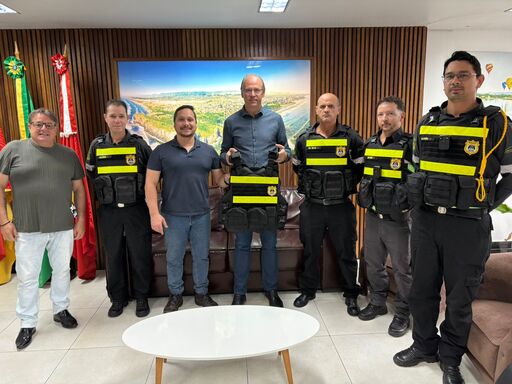 Nesta segunda-feira, 24 de novembro, os agentes de trânsito de Torres estiveram no Gabinete do Prefeito para receber novos equipamentos que reforçam a segurança nas ações de fiscalização. O principal foi a entrega das câmeras corporais e dos coletes balísticos de proteção Nível lII-A.