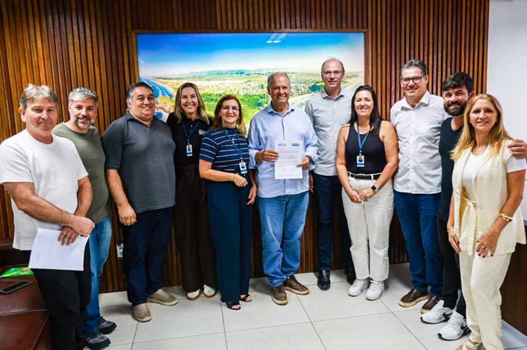 O ato foi realizado na sede da Prefeitura Municipal e contou com a presença do prefeito Alex Bianchin, vice-prefeito Ismael Sant’ana, chefe de gabinete Cristiani Scandolara, secretário de Administração e Finanças Richard Quadros, vereador Samuel Scheffer, engenheiro da Prefeitura Edson Borba, representante da empresa responsável pela obra, Eduardo, além de moradores da comunidade.