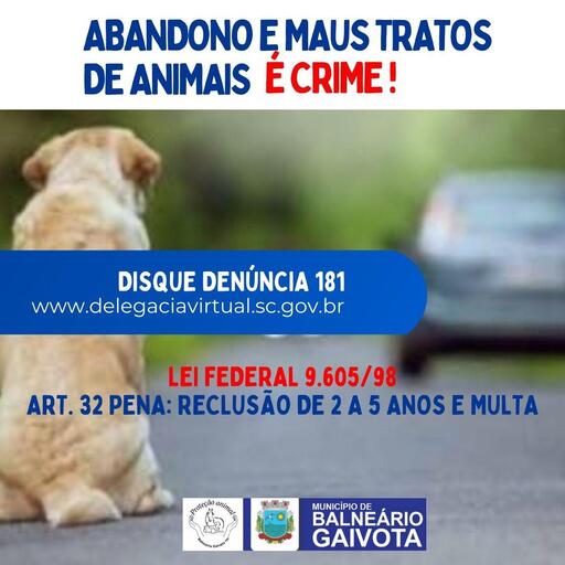A Administração Municipal reforça que o abandono não é apenas um ato de crueldade, mas um crime com penalidades severas.