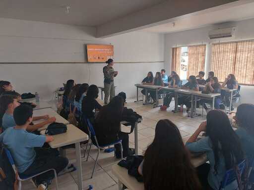 Nesta terça-feira (30/9), a Brigada Militar promoveu uma palestra educativa na Escola Municipal de Ensino Fundamental Manoel Oliveira Carneiro, em Torres, voltada aos alunos do 8º e 9º ano.