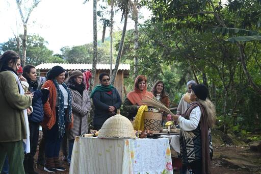 Em cada lugar, uma história. No assentamento Filhos de Sepé (MST-RS), em Viamão, a agroecologia se apresenta como prática cotidiana e política. Em Triunfo, na Comunidade Kilombola Morada da Paz – Território de Mãe Preta, o cuidado com a vida é conduzido por mulheres que sustentam um espaço matriarcal. Em Três Cachoeiras, o saber das pomadas artesanais atravessa gerações com o Movimento de Mulheres Camponesas. Há ainda vivências nos territórios Tekoa Guyra Nhendu, aldeia Mbya Guarani (Maquiné); Retomada Gãh Ré, do povo Kaingang (Porto Alegre); e Retomada Xokleng Konglui (São Francisco de Paula).