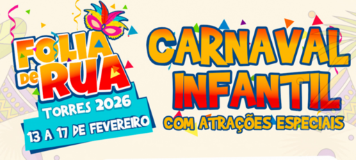 A Prefeitura de Torres promove, no domingo (15), uma programação dedicada especialmente aos pequenos foliões. O Carnaval Infantil terá início a partir das 18:00h, no palco principal instalado na Avenida Beira-Mar, reunindo famílias em um ambiente seguro e festivo. O evento contará com atrações especiais pensadas para garantir a diversão das crianças, celebrando a tradição do Carnaval com muita alegria à beira-mar.
