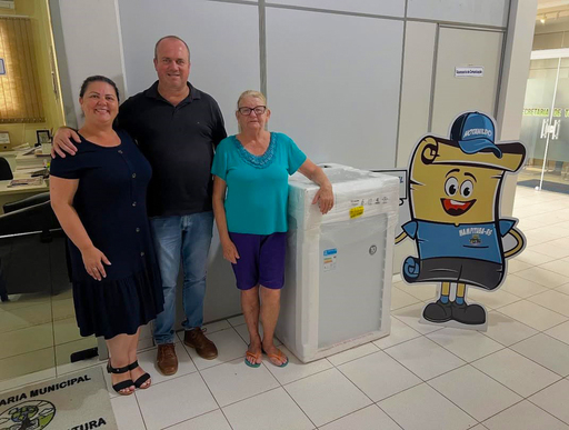 Mais uma ganhadora do programa Nota Premiada de Mampituba. A senhora Bernadete solicitou suas notas fiscais, realizou a troca por cupons e foi contemplada com uma máquina de lavar roupas. A entrega do prêmio foi realizada na segunda-feira (12), pelo prefeito Beto Roldão e pela secretária de Administração, Lediane Valim, reforçando o compromisso da Administração Municipal em incentivar a compra no comércio local e valorizar os cidadãos que participam do programa.