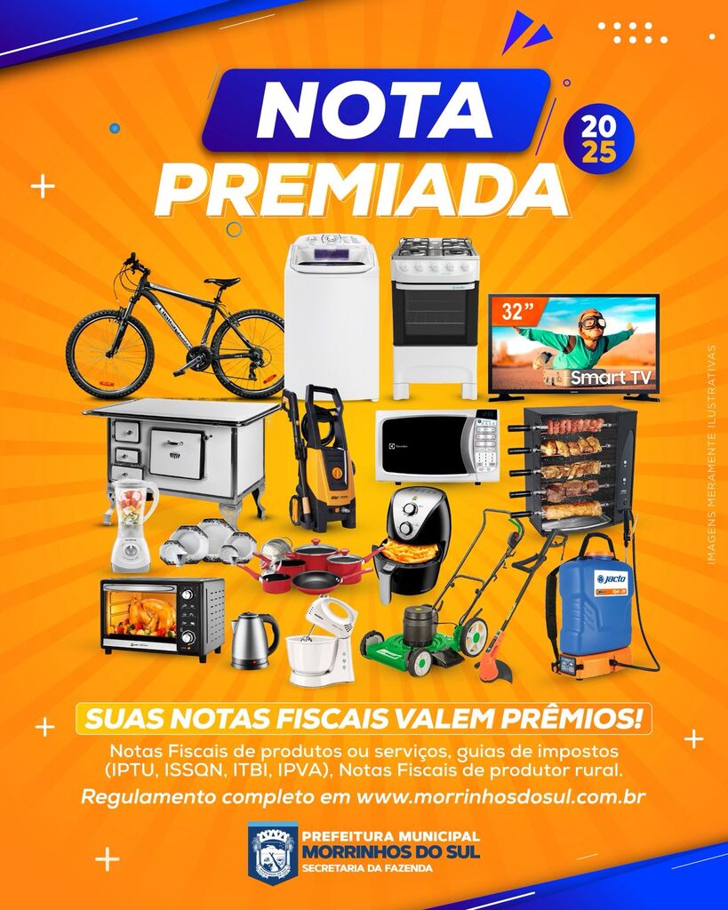 Através do Programa Nota Fiscal Premiada os cidadãos acumulam cupons sempre que comprarem em estabelecimentos comerciais de Morrinhos do Sul, com Nota Fiscal, de 2 de janeiro até 20 de dezembro de 2025, ou ainda quando efetuarem o pagamento das guias de impostos como IPTU, ISSQN, ITBI e IPVA.