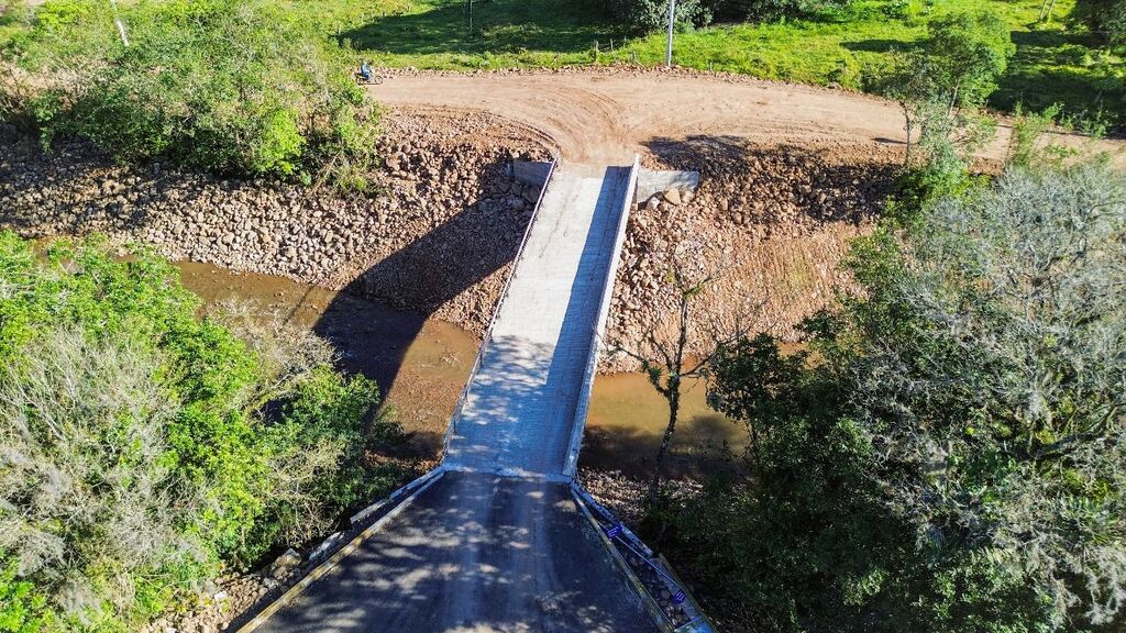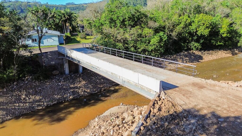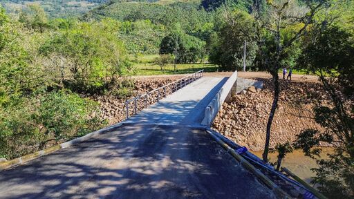 A Prefeitura de Morrinhos do Sul concluiu neste mês a reconstrução da ponte de Vila Três Passos. A nova estrutura conta com vão único e viga metálica, e foi elevada à altura máxima possível para assegurar a passagem de veículos mesmo em períodos de cheia.