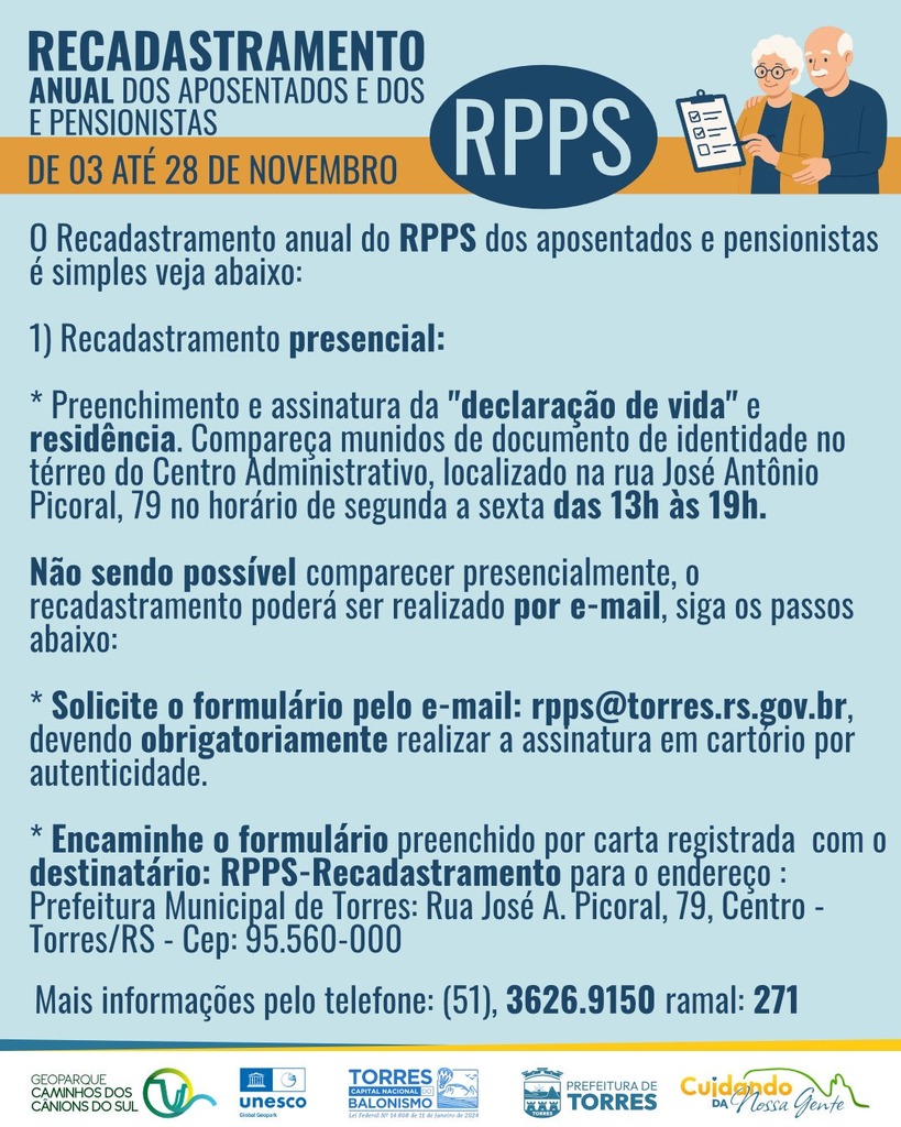 MUNICÍPIO PROMOVE RECADASTRAMENTO ANUAL DE SERVIDORES PÚBLICOS MUNICIPAIS APOSENTADOS E PENSIONISTAS |