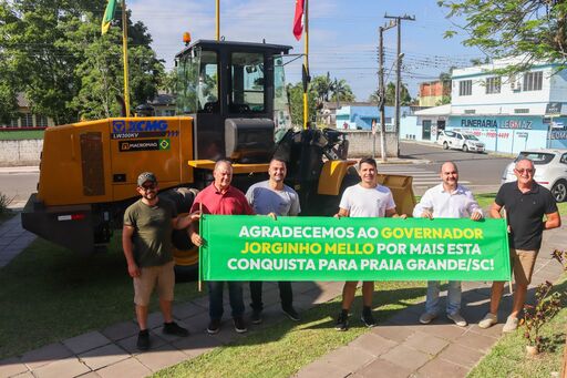 A entrega ocorreu em Praia Grande e contou com a presença do prefeito em exercício, Elizeu Espíndula (Colonão), que destacou a parceria com o Governo do Estado. “Estamos recebendo uma pá carregadeira do nosso governador Jorginho Mello. Um governo que tem feito muito por Santa Catarina e não é diferente aqui pelo Sul e por Praia Grande”, afirmou.