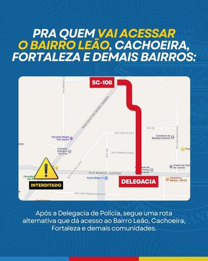 Já os motoristas que vão ao Bairro Leão, Cachoeira, Fortaleza e demais comunidades podem utilizar a rua logo após a Delegacia de Polícia.