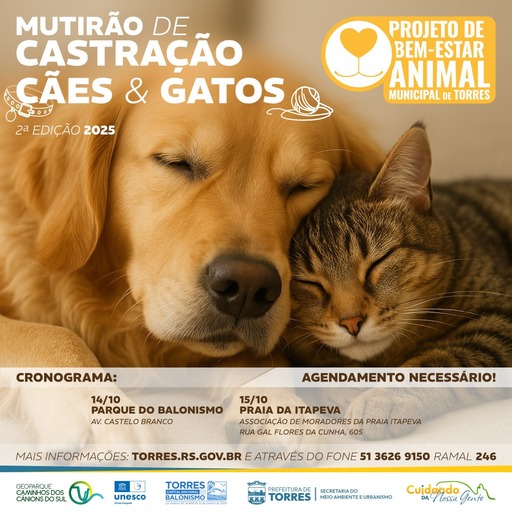 SEGUNDA EDIÇÃO DO MUTIRÃO DE CASTRAÇÃO ACONTECE NOS DIAS 14 E 15 DE OUTUBRO EM TORRES