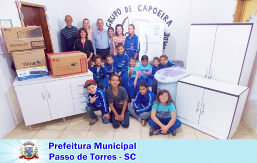 Na terça-feira, dia 08 de setembro, o Prefeito de Passo de Torres Juarez Godinho Scheffer fez a entrega oficial dos novos mobiliários e eletrodomésticos para o Serviço de Convivência do município. Estavam presentes o Secretário de Desenvolvimento Humano e Social André Cardoso, Secretária de Educação e Cultura Karini Colares, Coordenadora Vera Santos, Professoras Suyen Barts, Cristiana Agostinho e alunos.