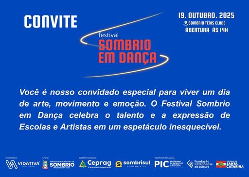 É com enorme orgulho que nossa cidade recebe mais de 600 bailarinos, coreógrafos e professores de 46 escolas e grupos de Santa Catarina e do Rio Grande do Sul. Será um dia inteiro para celebrar o talento e a dedicação que movem a cultura.