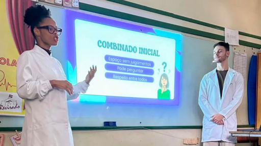 Programa saúde na escola une educação e prevenção em encontro com adolescentes.