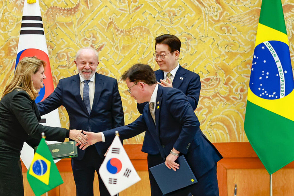Ricardo Stuckert / PR - Luiz Inácio Lula da Silva e a presidente da Embrapa, Silvia Massruhá, durante cerimônia de assinatura de atos na Casa Azul (Cheong Wa Dae), em Seul