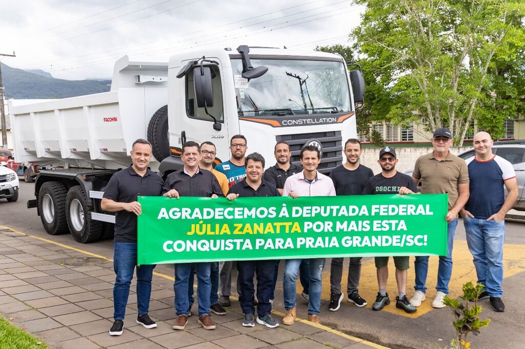 A Prefeitura de Praia Grande realizou nesta quinta-feira (09) a entrega de um novo caminhão para a Secretaria de Obras, reforçando a frota e contribuindo para a melhoria dos serviços prestados à população. O investimento total foi de R$ 591.500,00, sendo R$ 553.584,85 de emenda parlamentar da deputada federal Júlia Zanatta, e o valor restante custeado com recursos próprios da Prefeitura Municipal.