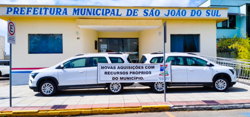 A Prefeitura Municipal de São João do Sul, adquiriu na última semana, dois novos veículos com recursos próprios do Município. São duas novas Chevrolet Spin, que serão entregues nos próximos dias para as secretarias de Educação e de Saúde.